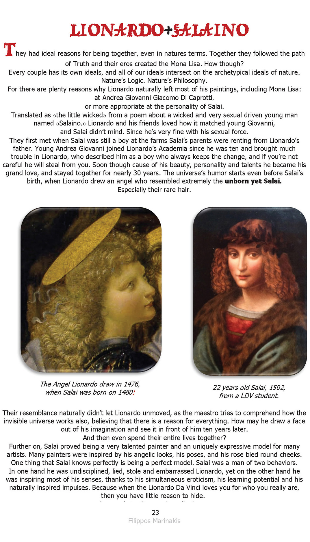 The illuminated polymath author, philosopher, scientist and artist Filippos Marinakis [MFA,MBA] for writting the historical fiction illuminated abook "The Revelation of Mona Li-sa: Guide In Wisdom" studied 4,500 Lionardo da Vinci's manuscripts and around 20 sciences. He's also a pioneering scientist, a very accomplished TV series Development Producer, a filmmaker and a photographer.